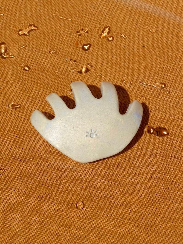 This palm is handmade from a stoneware clay body, and later finished with a blue glaze.